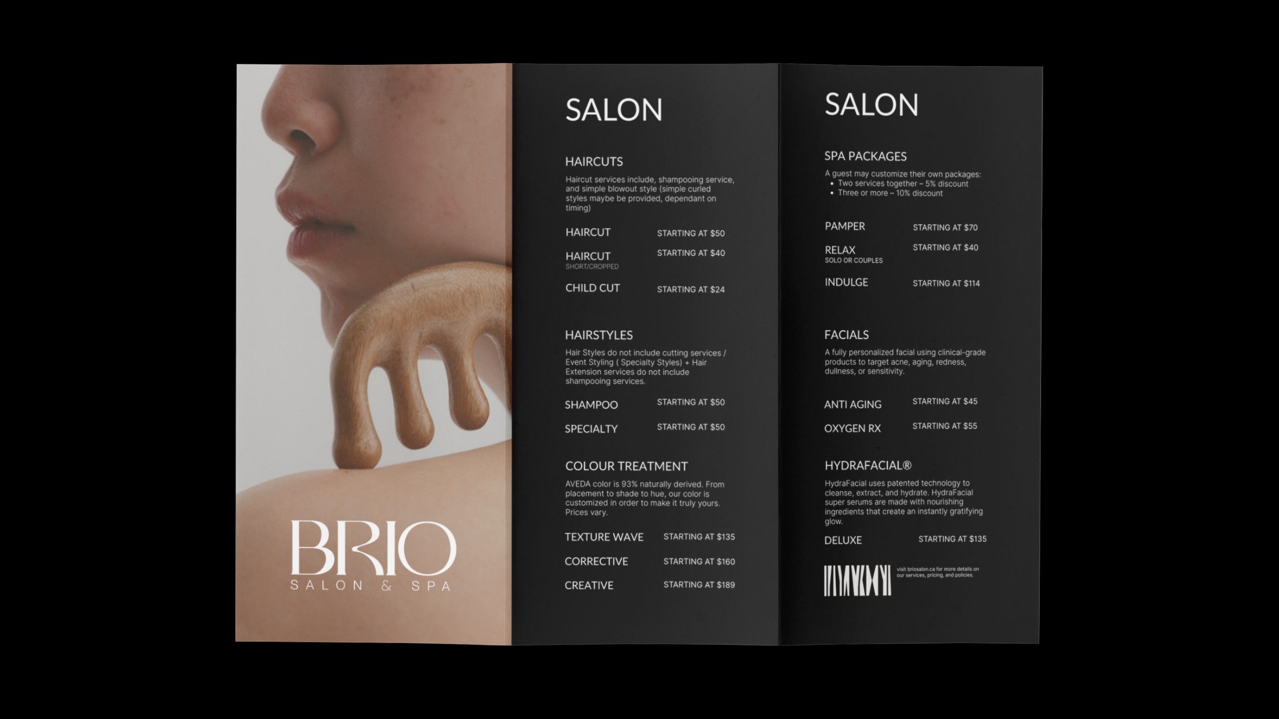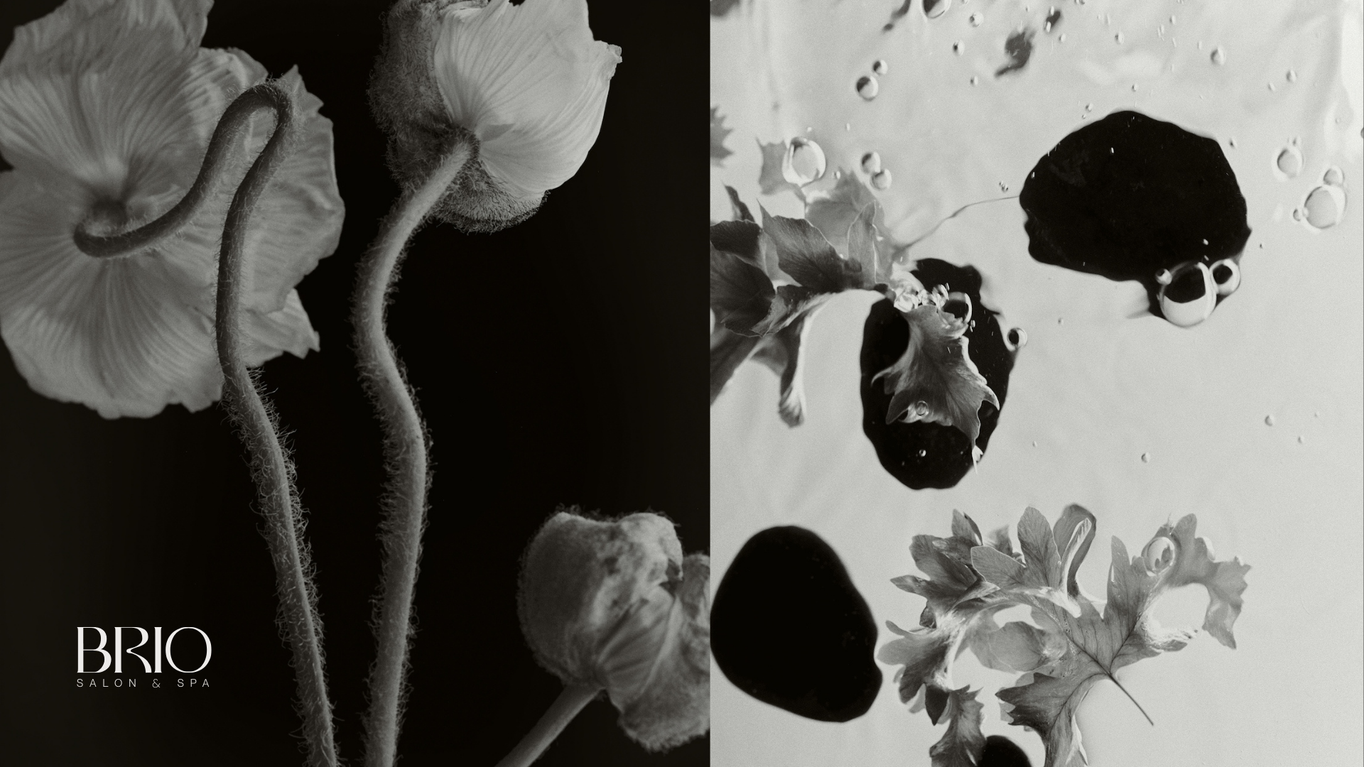 The Brio rebrand focused on curating a holistic atmosphere that extended far beyond hair services alone, positioning the salon as a lifestyle-driven experience. Organic imagery became central to the visual direction, introducing natural textures, fluid forms, and earthy tones that conveyed care, intention, and balance. This approach allowed the brand to feel grounded yet contemporary, By crafting a distinct visual language rooted in mood and feeling rather than trends, the rebrand established Brio as a space where beauty, environment, and personal expression intersected.